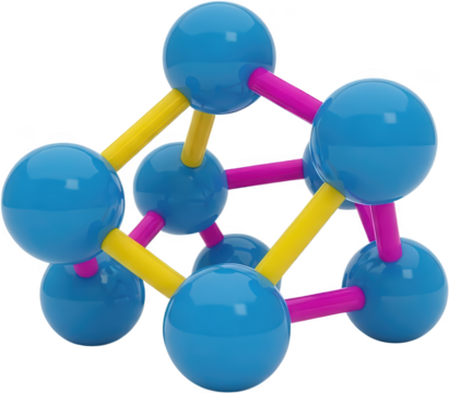 Transparent atomic structure illustration on clear background