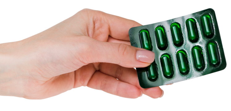 Hand Holding Blister Pack of Pills Isolated on Transparent Background