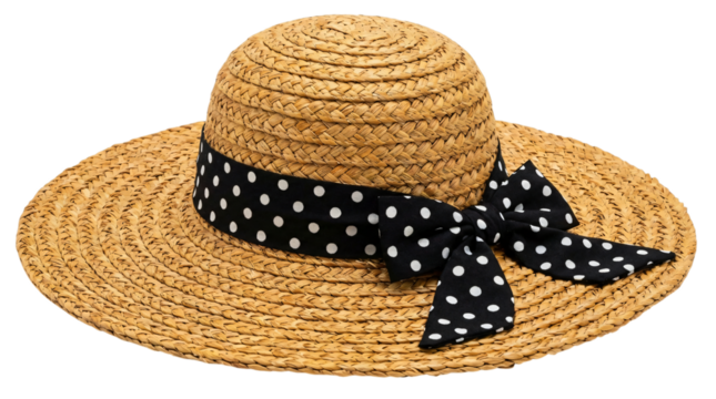 Straw Sun Hat with Black Polka Dot Ribbon in Elegant Style with Soft Natural Lighting for Summer Fashion