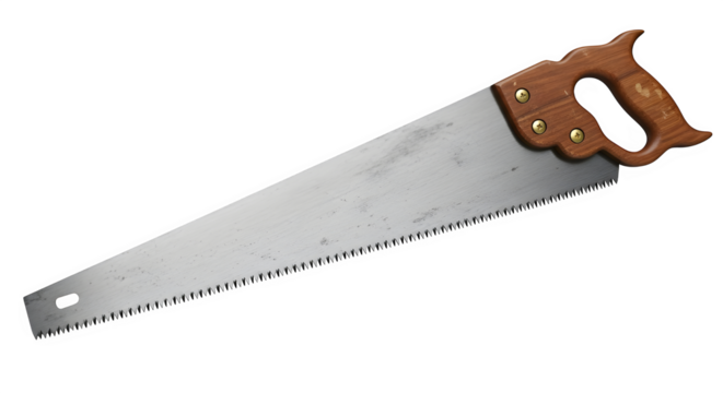 Traditional hand saw with wooden handle for carpentry and woodworking isolated on transparent background