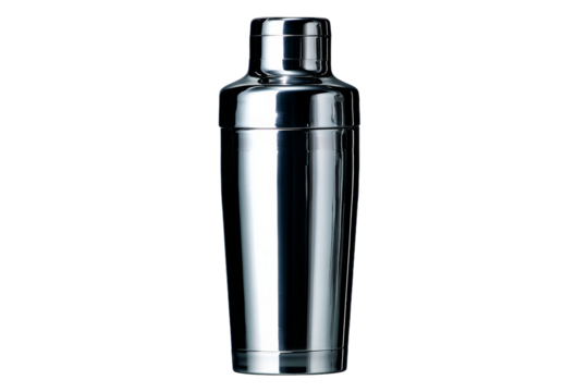 Photorealistic metallic thermal mug with black lid, perfect for showcasing your designs or for presentations related to beverages, travel, or sustainability, isolated on transparent background