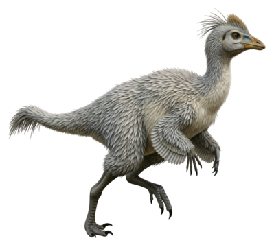 Avimimus alatus PNG with transparent background and light grey plumage, a bird-like theropod dinosaur