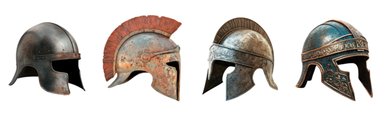 Set of ancient helmet on transparent background, PNG