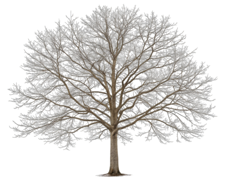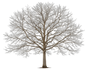 A large leafless tree with many branches and a thick trunk outdoors transparent background