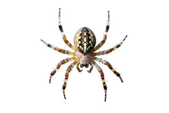 Spider hanging from a thick web in isolation, showcasing its delicate structure and intricate design during daylight hours in a natural setting