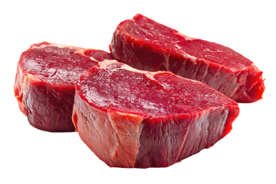 raw pork cut pieces displayed on a transparent background highlighting marbled texture and varying thickness of meat showing unprocessed fresh pork portions