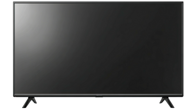 A flat, rectangular television screen displays a dark, gradient background on a black bezel
