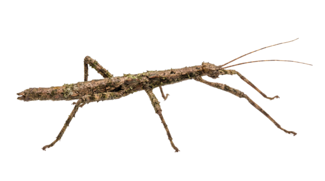 Isolated tropical insect, stick insect Phasmatodea, animal with long thin body and legs