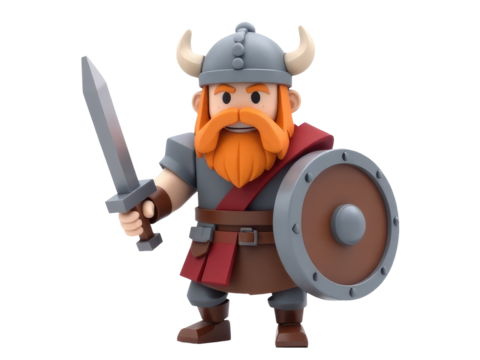 A brave cartoon viking warrior holding a sword and shield, ready for battle