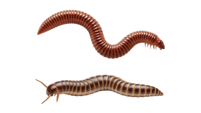 Closeup macro photograph of a reddishbrown ant with visible antennae, mandibles, and segmented body, isolated on transparent background