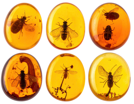 Amber preserves insects golden, translucent, prehistoric
