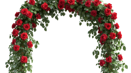 A Lush Climbing Rose Vine with Deep Red Flowers Isolated on Transparent Background