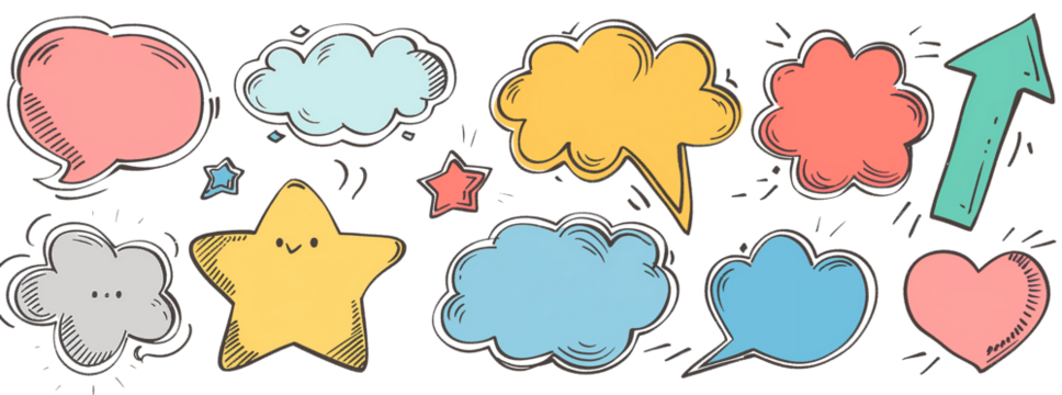 Hand drawn speech bubble colored pencil on transparent background. speech bubble png.