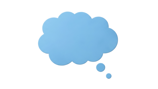 Light blue thought bubble PNG isolated on transparent background, cartoon cloud shape for graphic design and creative projects