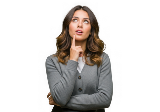 Thoughtful woman contemplating isolated on transparent background