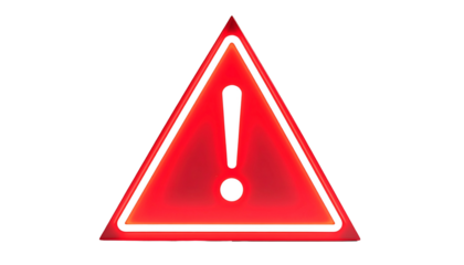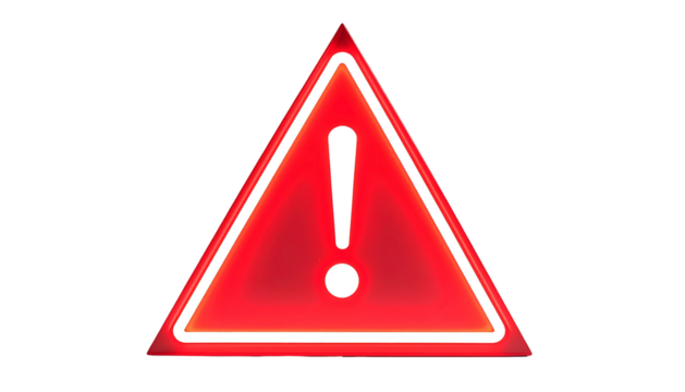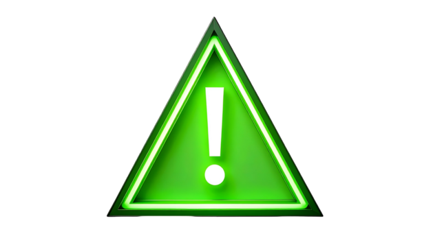 Illuminated green warning icon, a neon triangle, with an exclamation mark at its center