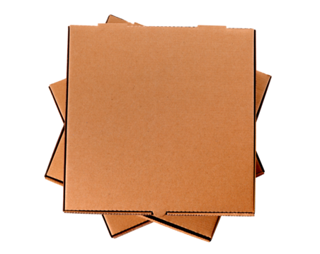 Three stacked cardboard boxes of varying sizes, light beige color, simple design,  placed on a solid black background