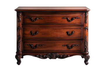 Antique wooden dresser with intricate carvings and three drawers