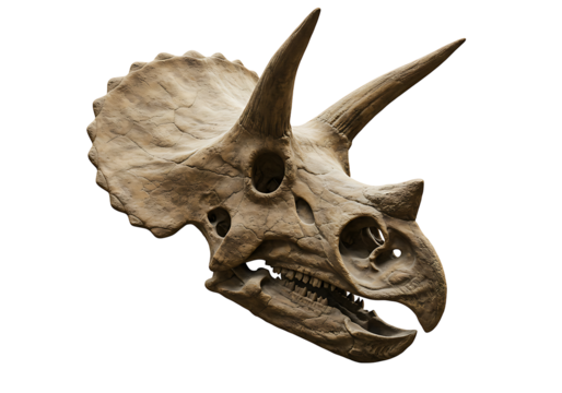 Triceratops Prehistoric Era: A highly detailed, realistic rendering of a Triceratops, a herbivorous dinosaur from the late Cretaceous period, showcasing its distinct three horns and frill.