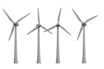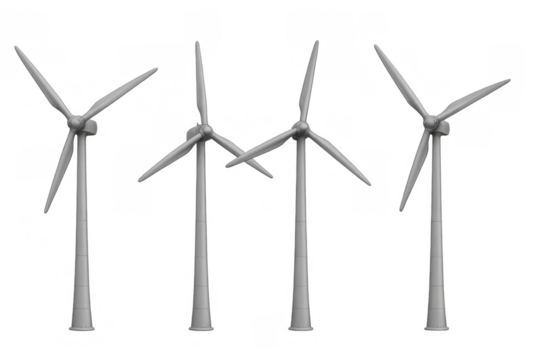 Wind turbines generating clean electricity and renewable energy for a sustainable future on transparent background