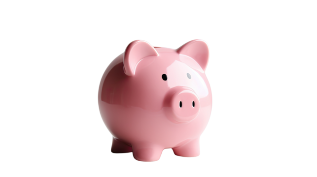 Hand holds small pink ceramic piggy bank symbolizing savings and financial security transparent background
