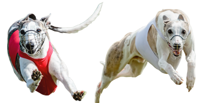 Whippets racing fiercely in protective gear, showcasing speed, agility, and the thrill of competition at its finest, perfect for sports enthusiasts