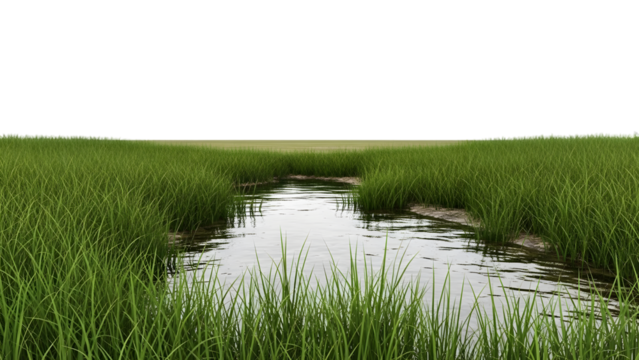 Serene stream flowing through green grassy field isolated on a transparent background water
