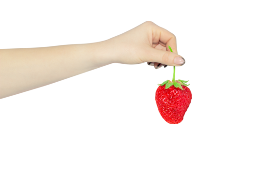 strawberry in hand isolated from background, concept to pass or throw away