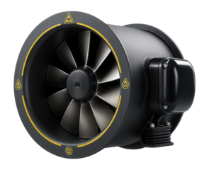 Jet fan with a cylindrical shape and high thrust output for smoke extraction in a tunnel