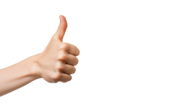 Hand showing thumb up sign isolated on transparent background