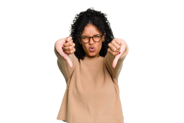 Young cute brazilian woman isolated showing thumb down and expressing dislike.