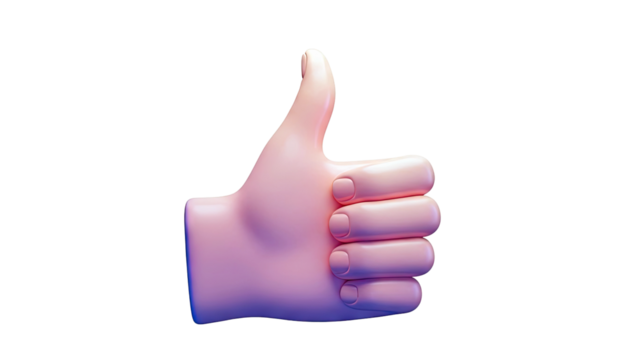 3D Thumbs Up Icon with Blue Sleeve on Transparent Background