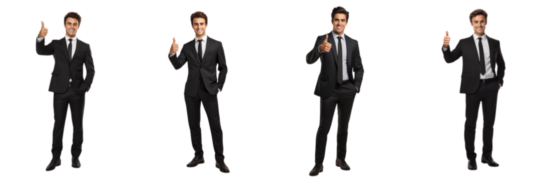 Set of a business man standing up with a thump up high quality isolated on a Transparent Background