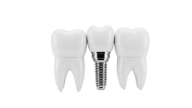 Dental implant and crown isolated PNG on transparent background, artificial tooth and screw for dental prosthetics and oral health