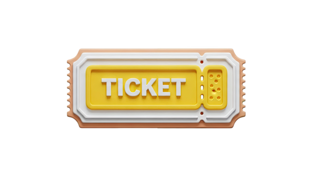 Teal ticket floating against transparent backdrop, providing ample negative space for graphic design and event branding needs