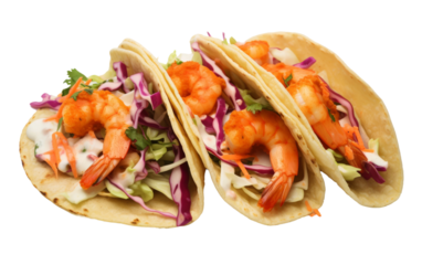 Tempting Spicy Shrimp Tacos with Slaw on transparent background