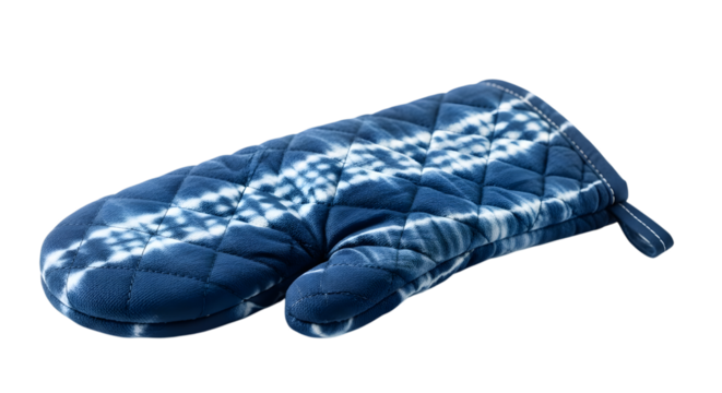 Blue tiedye oven mitt isolated on transparent background for safe cooking use