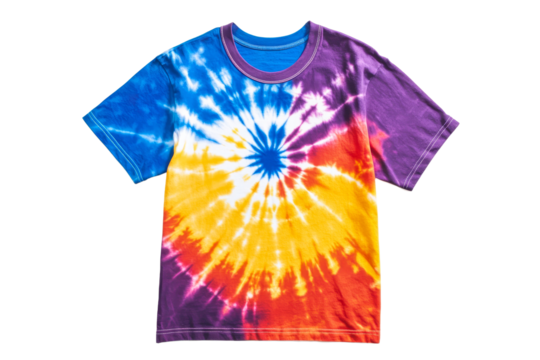 Colorful tie dye tee on white background