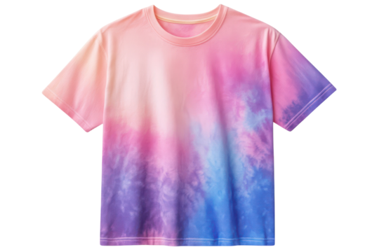 Pastel Tie Dye T Shirt Soft Pink Purple Blue ombre design on a classic tee perfect for summer on transparent background