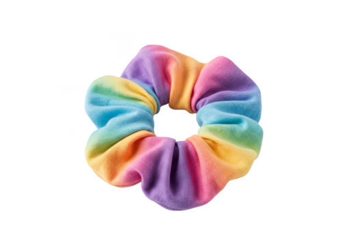 Isolated Colorful Rainbow Scrunchie Hair Tie On Transparent Background