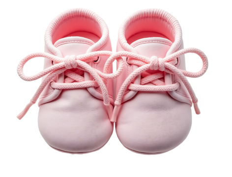Soft pink baby booties with tied laces isolated on a transparent background leather