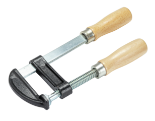 close-up on a black plastic adjustable clamp holder for a smartphone or small camera, isolated on transparent background.