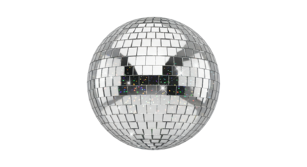 Colorful cartoon disco ball with heart sunglasses on transparent background