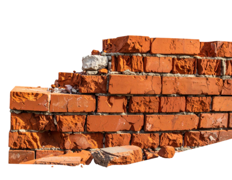Fragmented Red Brick Wall Texture with Weathered Surface and Rustic Appearance