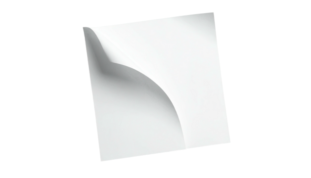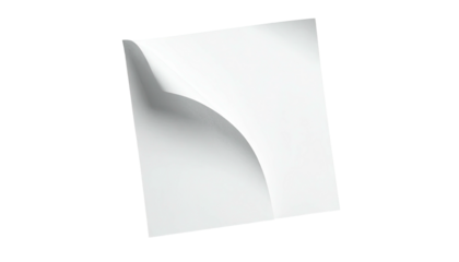 A white square with a curved element, partially peeling, against a black background
