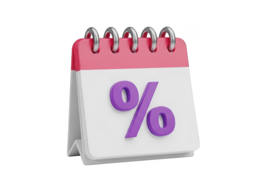 3d calendar page with percentage symbol isolated on transparent background