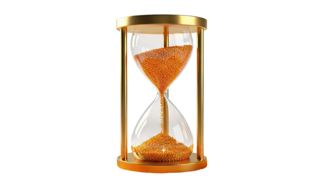 Hourglass isolated on transparent background, a symbol of time passing and deadlines