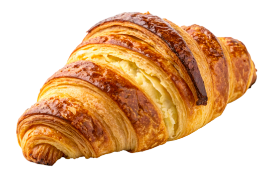 Golden brown flaky croissant with rich buttery layers and a crisp crust, perfect for breakfast or a delicious pastry treat for any time of day.