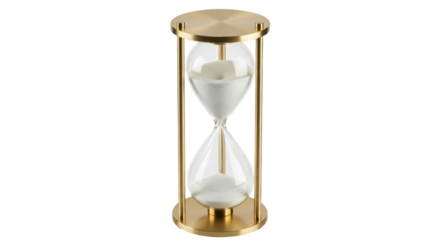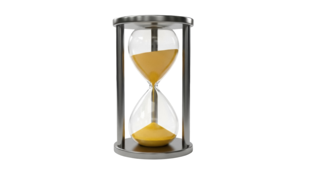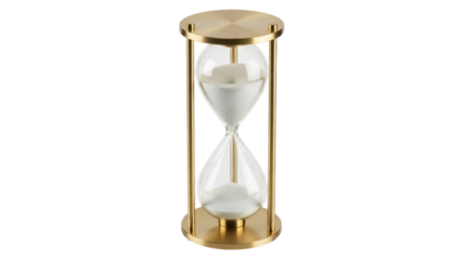 Elegant hourglass with golden sand isolated PNG, time management concept for deadlines and productivity on transparent background