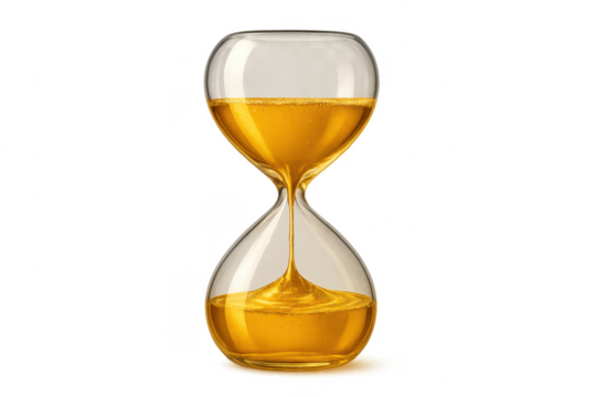 Hourglass with golden liquid flowing, symbolizing time expiring